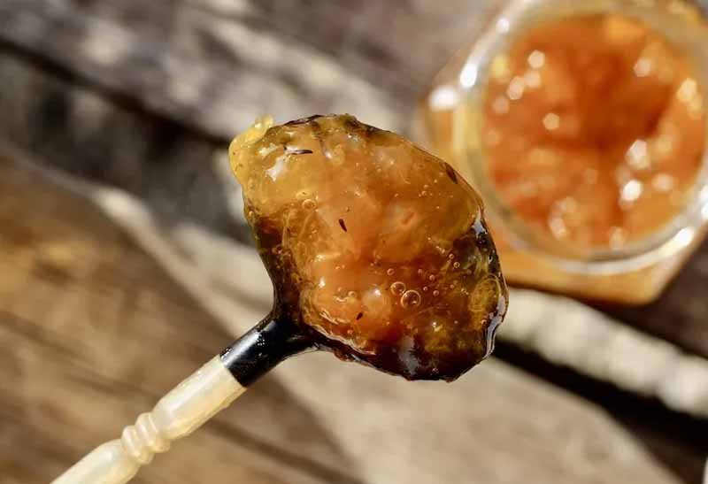La cuisson au chaudron préserve la pulpe du fruit et concentre ses arômes sans excès de sucre. En bouche, la texture est généreuse, la douceur maîtrisée, portée par une finale fraîche et délicatement végétale. Une création artisanale sincère, élaborée sans additifs ni conservateurs, qui révèle toute la richesse du terroir du Domaine de Léos.